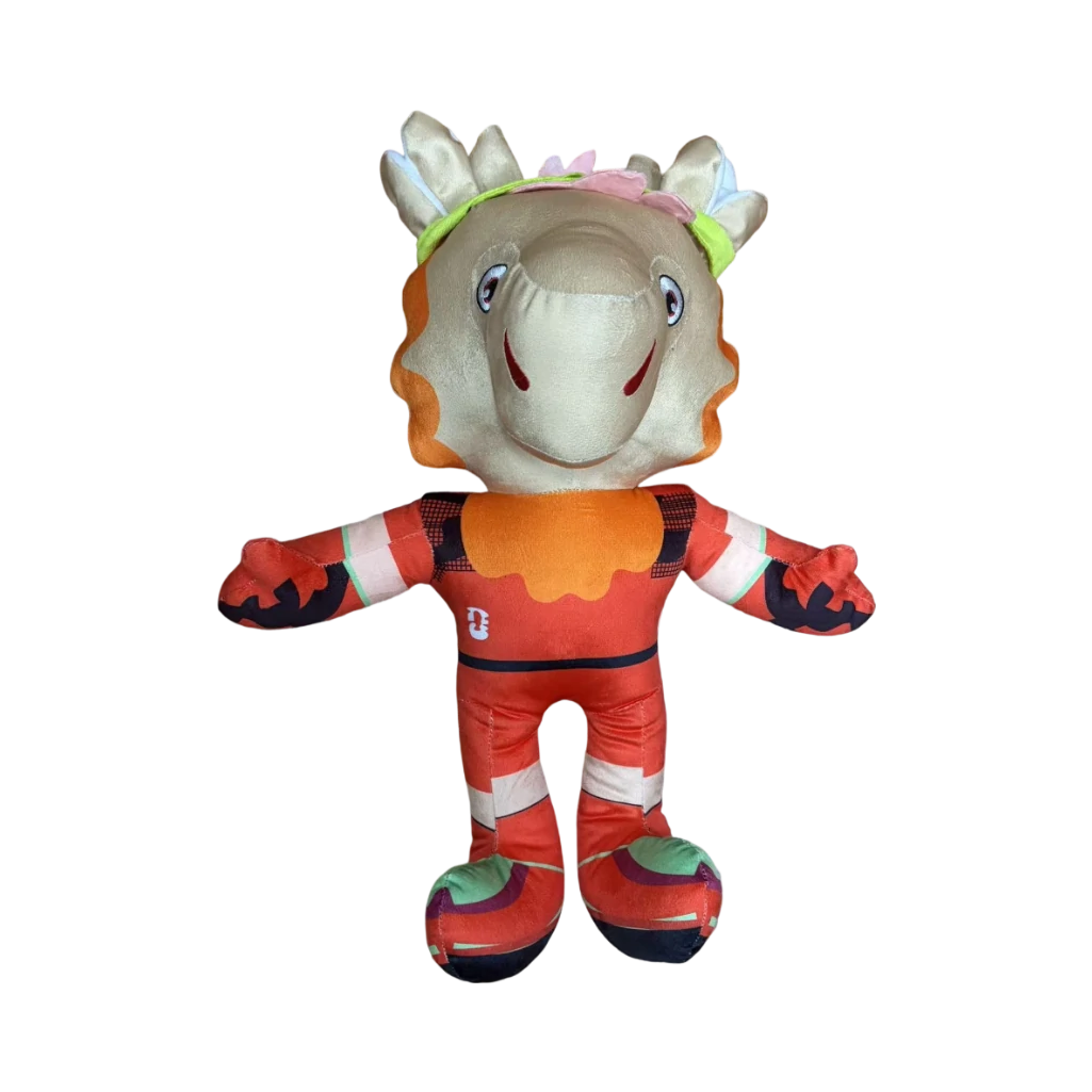 - Authentic Design: Faithfully represents the Canadian host nation’s mascot, complete with a detailed red and orange soccer uniform and friendly facial features.